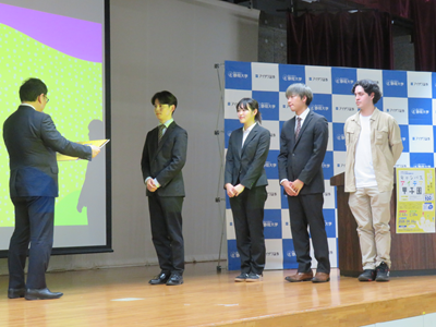 最優秀賞には、留学生の日本語学習および生活支援を目的としたアプリ「シグッピー」の開発を提案したチームが選ばれました。チームリーダーである大学院教育学研究科2年 吉田厚輝さんは、「ここから実現に向けて取り組みたい」と抱負を述べました。