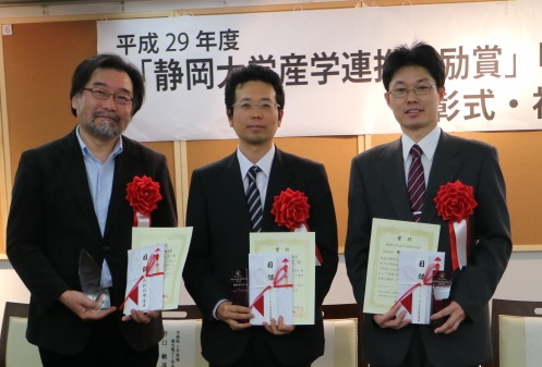平成30年3月1日(木)、静岡大学高柳記念未来技術創造館において、平成29年度「静岡大学産学連携奨励賞」および「はましん産学連携大賞」授賞式が執り行われ、下記3名の教員が表彰されました。今後、これらの研究成果が産業応用や地域の発展につながることが期待されます。